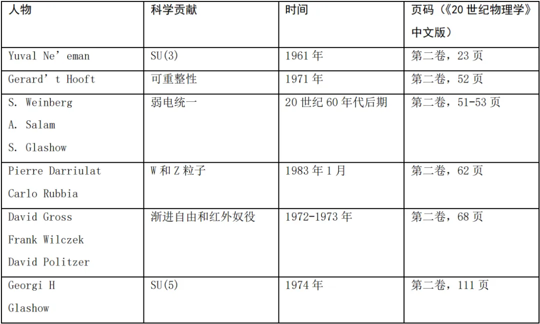 表3 《20世纪物理学》中杨-Mills理论的衍生成果一览