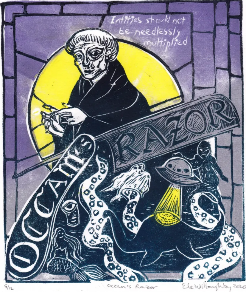 ▷图 4. 《奥卡姆剃刀》,来自《虚构科学之友》系列插画. 作者:Ele Willoughby, PhD