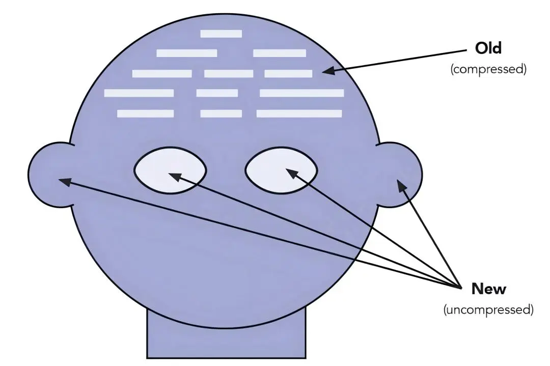 至于多位学者(如Hinton、Schmidhuber等)提出的“压缩=智能”(Compression as Intelligence),其核心逻辑是智能系统能够从大量数据中提取关键规律,忽略冗余信息。例如,人类可以从少量示例中学习通用规则(如语言语法)。压缩不仅仅是减少数据量,更重要的是发现数据背后的潜在规律(如物理定律、统计模式)。通过压缩得到的简洁规律能够推广到新场景,解决未见过的问题。不止机器,大脑也通过压缩信息(如抽象概念)实现高效记忆和推理。和奥卡姆一样,“压缩=智能”都强调了简约性在智能行为中的核心作用。