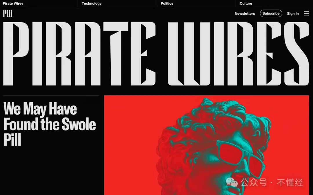 围绕在Founders Fund周围的,还有像Mike Solana这样的“海盗电台”式人物,他运营的《Pirate Wires》以极其犀利、反主流的观点,成为了硅谷异见者们的精神营地。