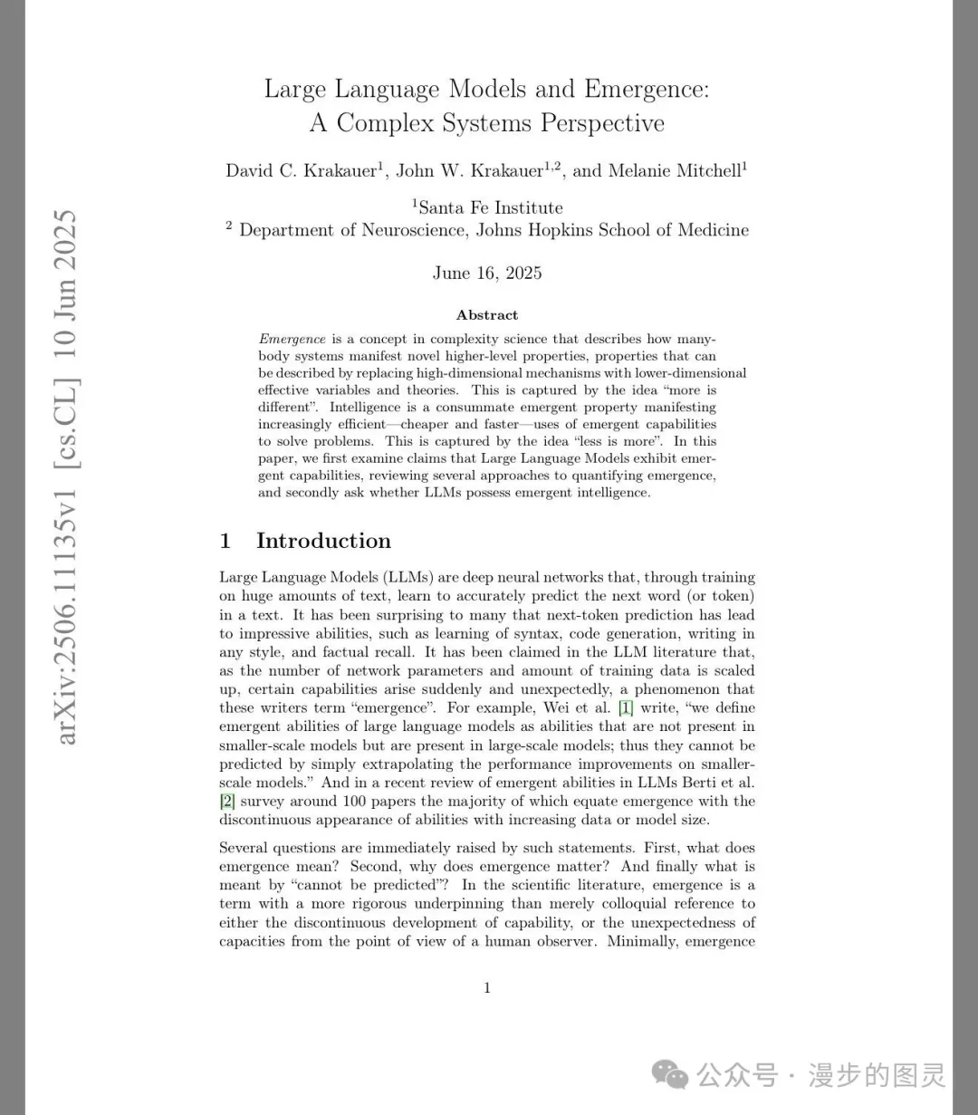 一份来自圣塔菲研究所,由David Krakauer和Melanie Mitchell等复杂科学巨匠共同撰写的天才之作。它的编号,arXiv 2506.11135。