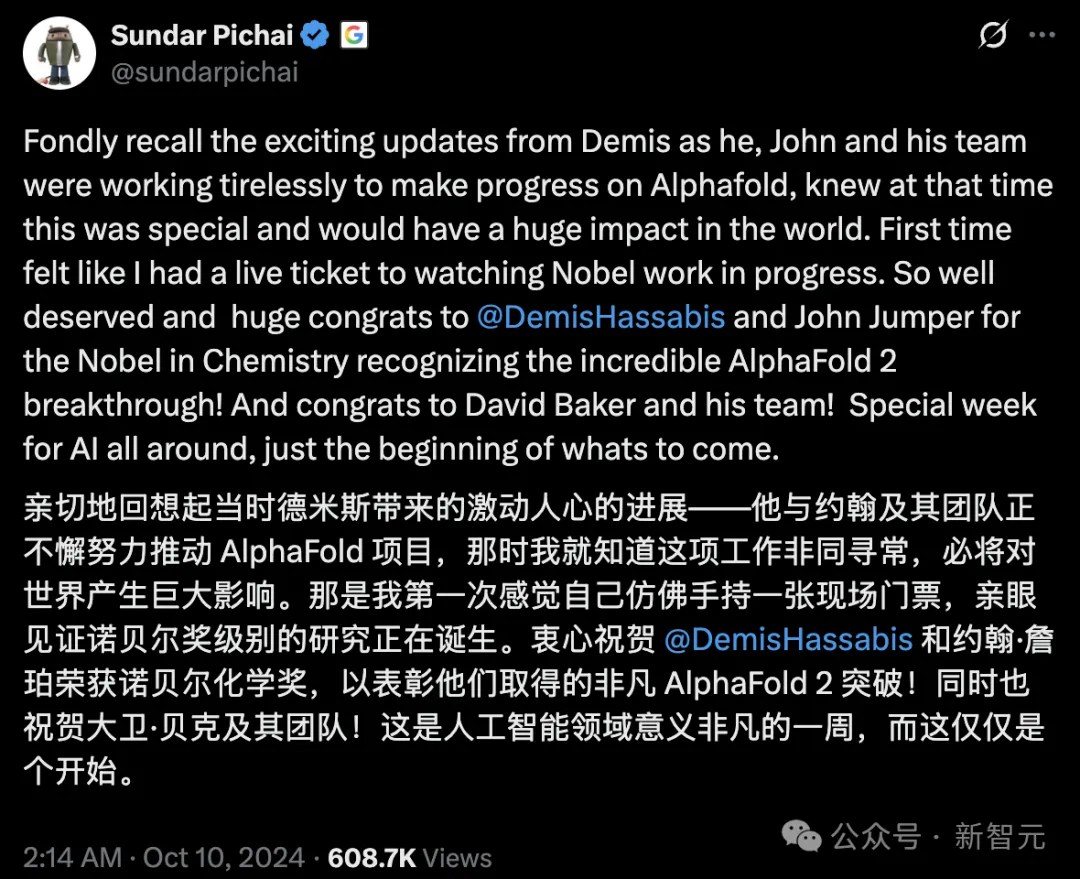 首席执行官Sundar Pichai在社交平台X上称「这是人工智能领域意义非凡的一周,而且仅仅只是一个开始」。