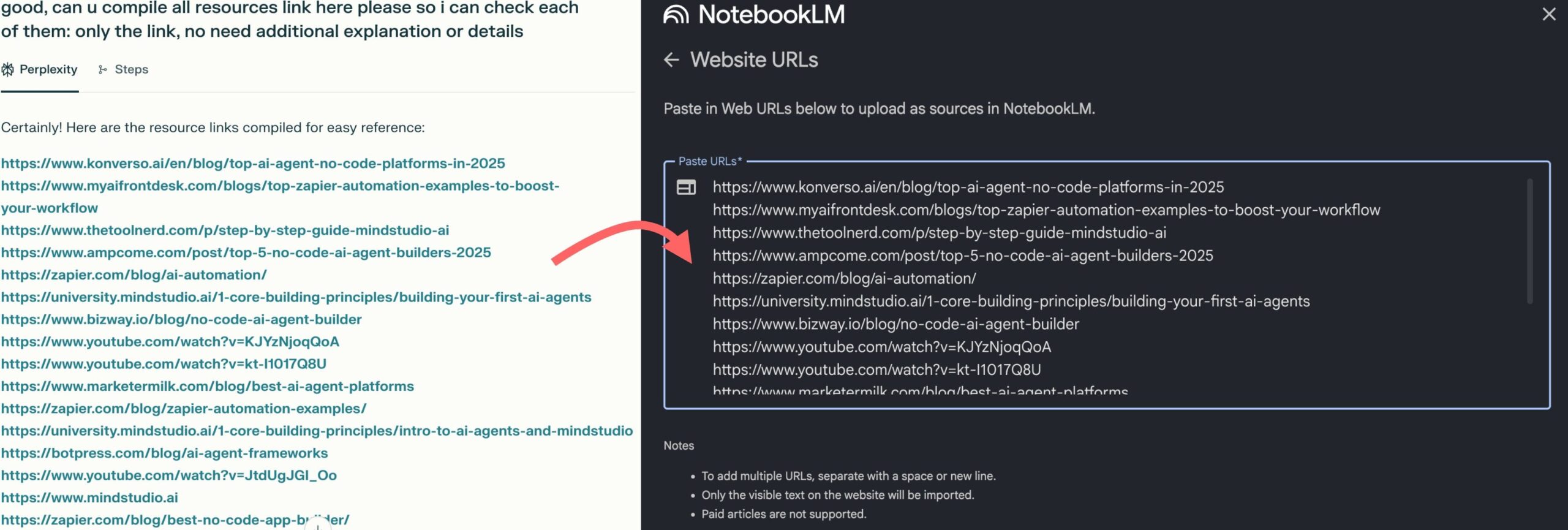 🚨 专业提示:想提升你的信源收集效率吗?使用 Perplexity 的深度研究功能来收集高质量信源,然后让它将引用文献汇编为原始链接。把这些链接复制到 NotebookLM 中作为你的信源集。这样,你就快速拥有了一个精选的研究中心。