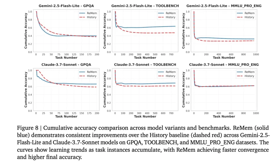 这种能力此前之所以没有被充分利用,是因为以前的模型大多只是优秀的做题家,而缺乏成为出题人(评价指令)所需的深刻内省能力。ReMem 证明了,当今的 SOTA 模型(如 Gemini 2.5 和 Claude 3.7)已经具备了这种能力。它们不仅能生成答案,还能评价答案的质量,并将其转化为策略知识而非仅仅是事实知识。
