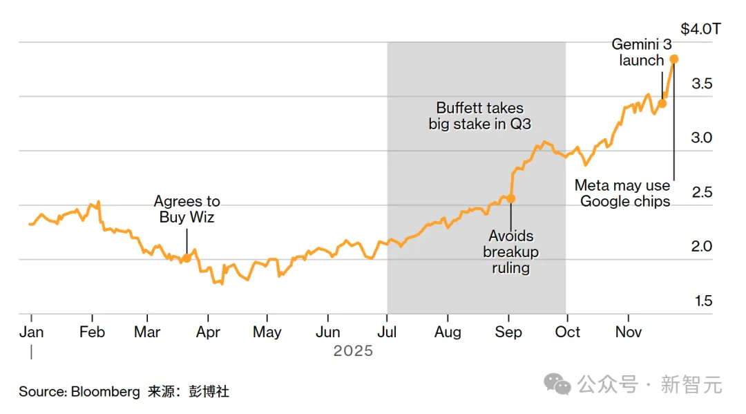 与此同时,谷歌母公司Alphabet的股价却一路飙升,正迈向4万亿美元的市值。