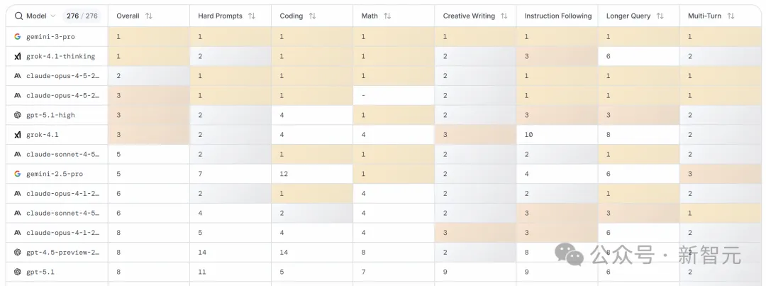 在LMArena竞技场排行榜中,Gemini 3 Pro在所有项目中目前都排名第一。