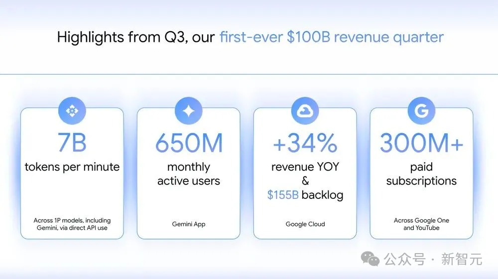 这些数据展示了C端产品作为AI能力载体的恐怖规模,也使得Gemini应用在推出后,月活跃用户数迅速超过6.5亿,形成了驱动AI进步的数据飞轮。