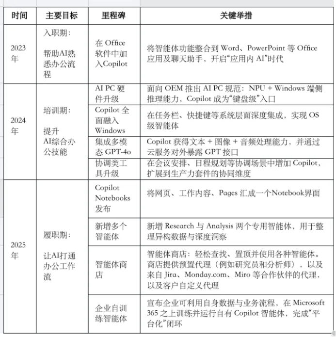 微软办公智能体把生成式AI进一步从“炫技”拉回“买单”,具体来说可以分为三个阶段: