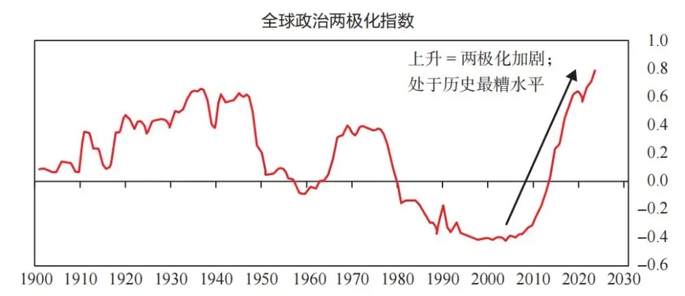 当下,美国的政治分裂已经变得深刻且顽固。事实上,这一现象是全球性的,只是在不同的国家中程度不同。人们在生产力、财富和价值观上的差距扩大,以及对民主制度运作方式的不满情绪增加,导致了更多的民粹主义冲突,并催生了类似于1905—1914 年和 1933—1938 年的政策。