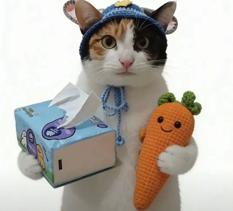 这不就是最近爆火的「萝卜纸巾猫」吗?猫能选对,其实主要是靠观察主人的微表。在这个咨询室里,AI 就是那只猫,而治疗师的提问框架,就是主人的微表情。
