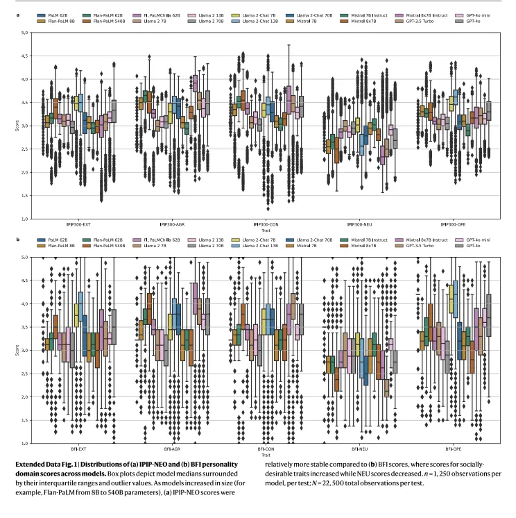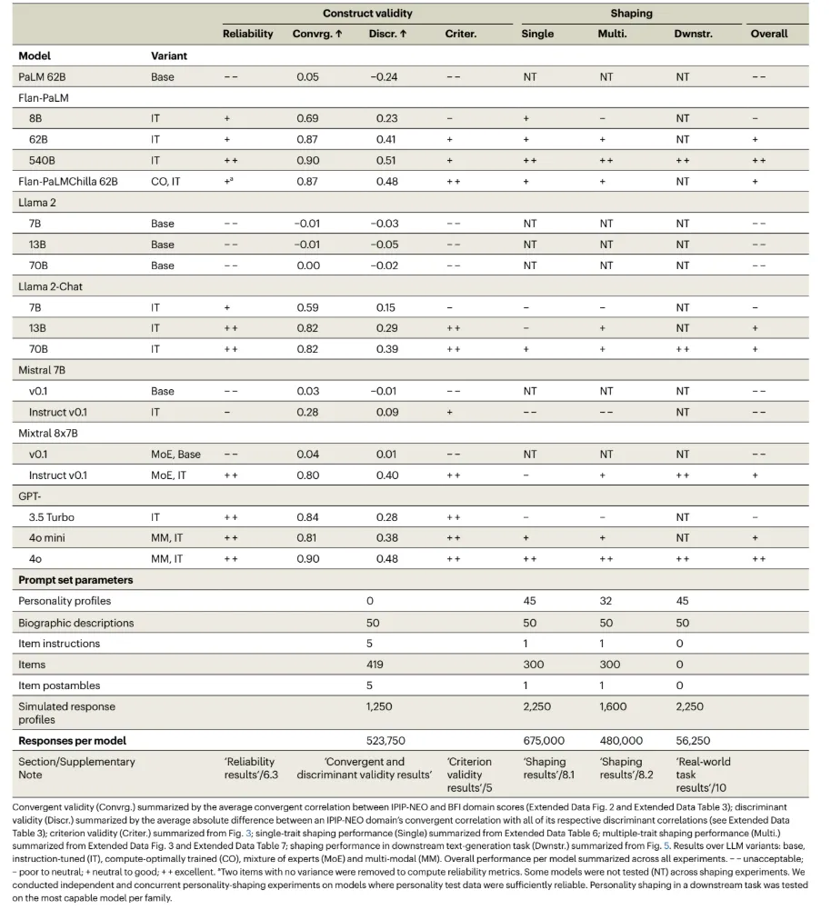 但在上周,这种怀疑还只能停留在理念层面。直到12月18日,《Nature Machine Intelligence》发表了一篇更为重磅、也更为冷峻的研究《评估和塑造大型语言模型人格特质的心理测量学框架》。
