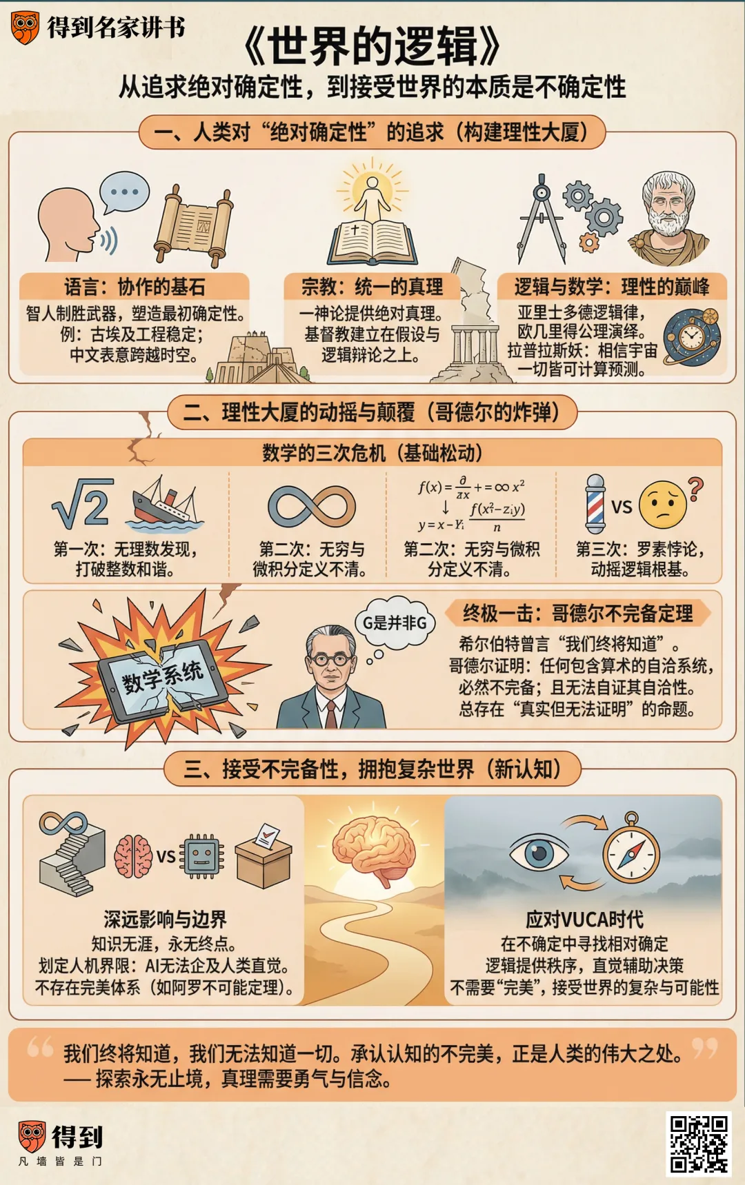 这个故事揭示了人类认知史上最深刻的转折:我们用了7万年时间,从追求绝对的确定性,到最终不得不接受——不确定性才是世界的本质。这个转折是如何发生的呢?这个转折的全过程,就是这本书要讲述的内容。