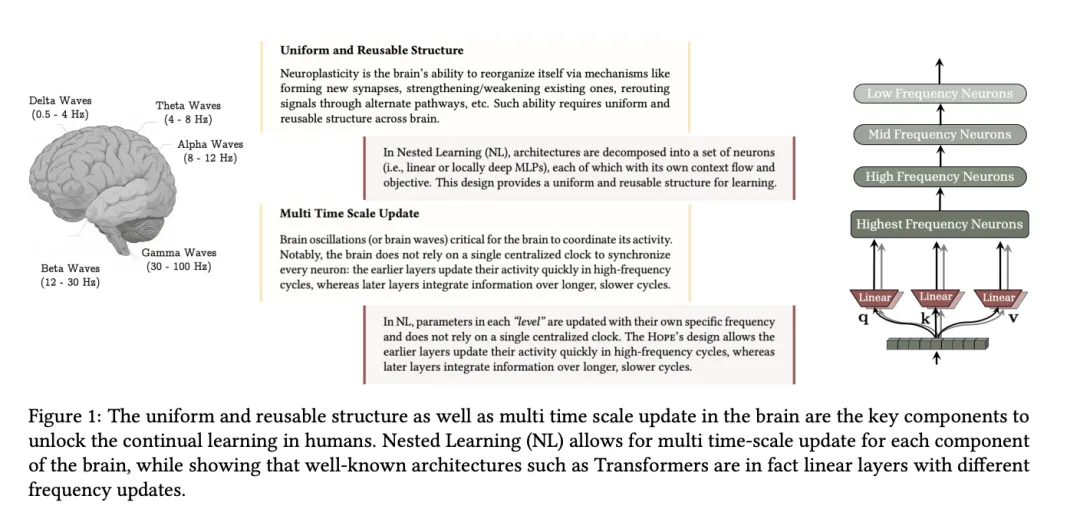 如果说这是在不会记新东西的Transformer上加了一些记忆模块补丁,那Nested Learning就是一个更宏大的架构改变。