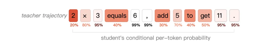 再如Thinking Machines 提出的在策略蒸馏(On-Policy Distillation, OPD),结合了 RL 的采样方式和 SFT 的监督信号。训练数据不再是老师的录像,而是学生模型自己实时生成的轨迹。学生要在自己真实的“犯错分布”中学习,这是RL的采样方法。但它评估用的是SFT的密集反馈,老师模型会全程陪跑,在学生生成的每一个 Token 上都计算 KL 散度(即直接告诉学生你和我的差距在哪里),提供密集的即时反馈,而不是像 RL 那样最后才给一个标量分数。这种方法创造了一种既不会导致灾难性遗忘,同时也极大压缩成本的参数更新方式。