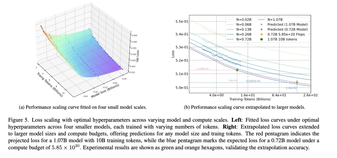 但这个路子毕竟还是有点野。在25年的论文《Towards Precise Scaling Laws for Video Diffusion Transformers》,更主流的DiT也被发现符合Scaling Law,不过这个Law与LLM不太一样。与LLM相对稳定的特性不一样,视频扩散模型对批量大小(Batch Size)和学习率(Learning Rate)表现出极高的敏感性。直接套用LLM的缩放定律会导致预测失效。