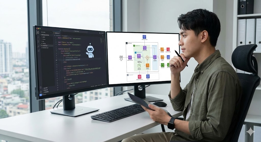 另一种未来则要有意思得多:开发者进化为高层次的编排者,融合技术、战略与伦理责任。随着 AI 工人的出现,人类开发者承担起类似架构师或总承包商的角色,负责设计整体系统,决定哪些任务交给哪一个 AI 或软件组件,并将众多运转中的部件编织成一个完整方案。