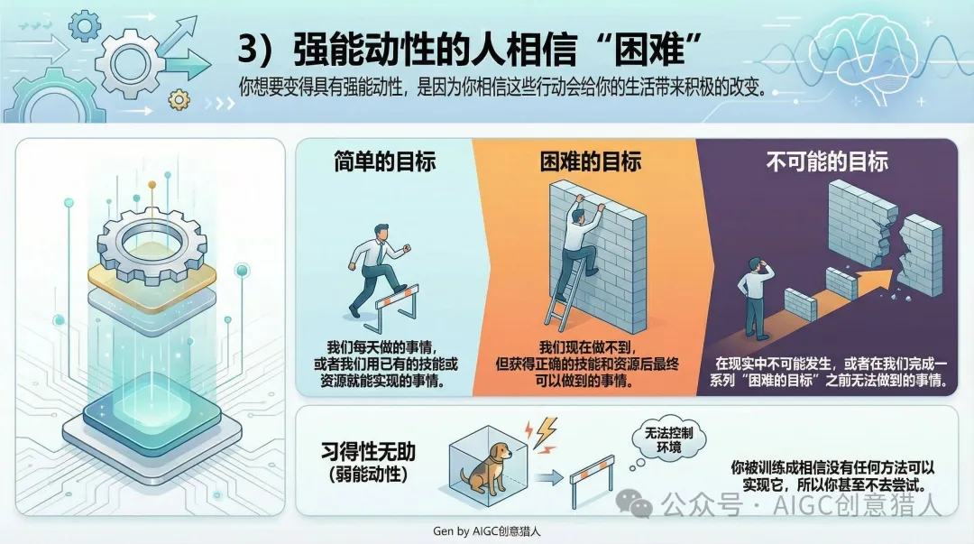 3)强能动性的人相信“困难”