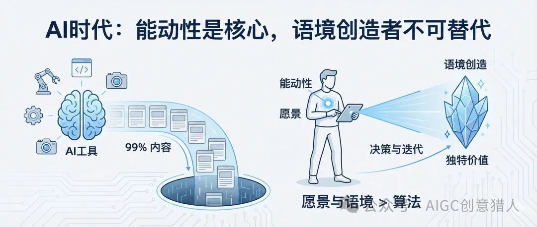 99% 的 AI 生成内容都会直接沉入海底,因为如果内容有效,那么价值就在那里,是不是 AI 生成的并不重要,因为它很可能由一个将其个人语境传递给 AI 的人类所策划。