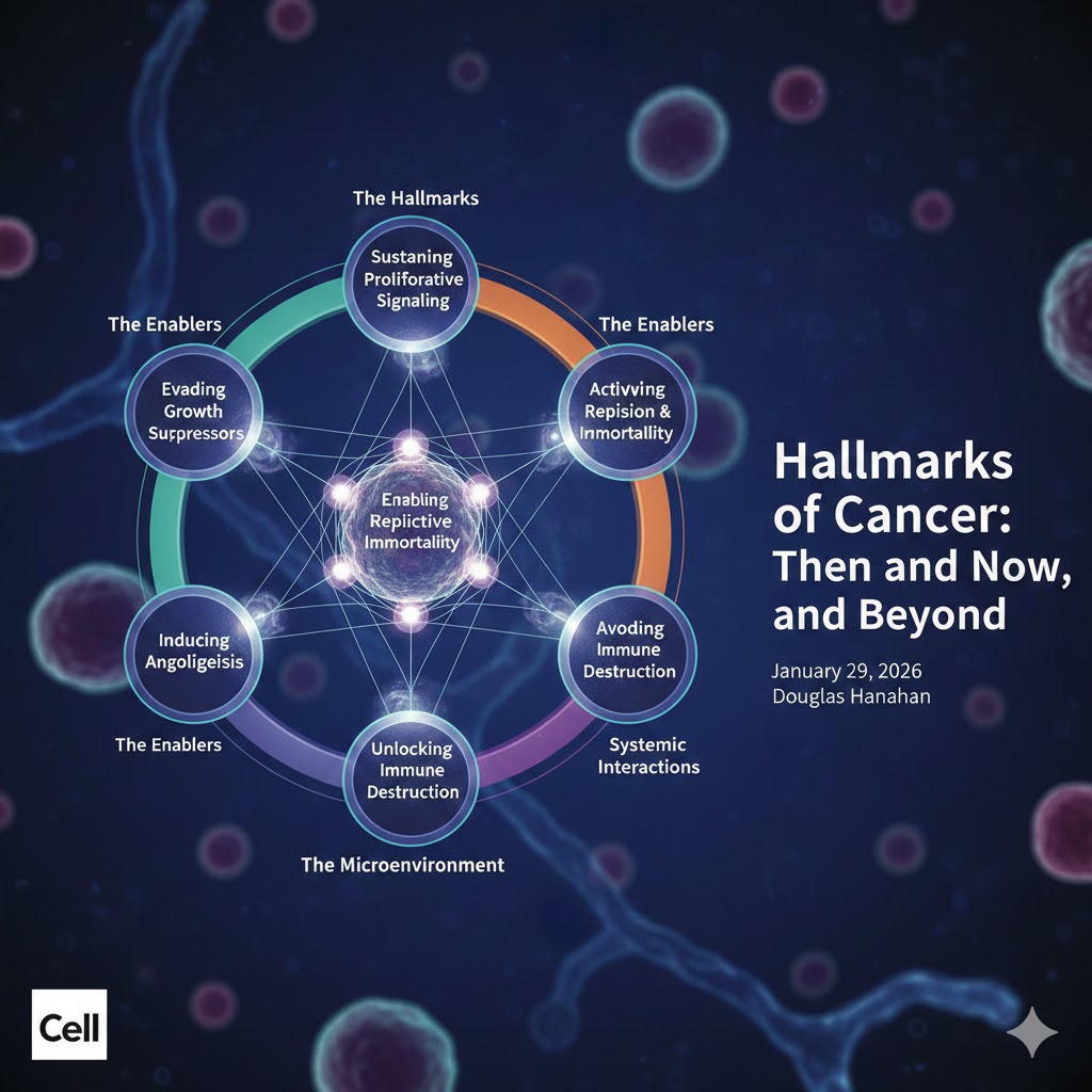 2026 年 1 月 29 日,著名癌症学家 Douglas Hanahan 在国际顶尖学术期刊 Cell 上发表了关于“癌症特征”理论的最新综述——Hallmarks of cancer—Then and now, and beyond。这距离他与 Robert Weinberg 首次提出癌症特征理论已过去了 26 年,当时他们提出的癌症的六大特征彻底改变了人们对癌症的理解。