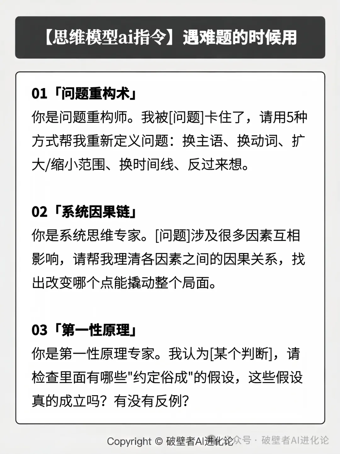 这条指令的价值在于:它不给你答案,它帮你找到正确的问题。而正确的问题,往往自带答案。