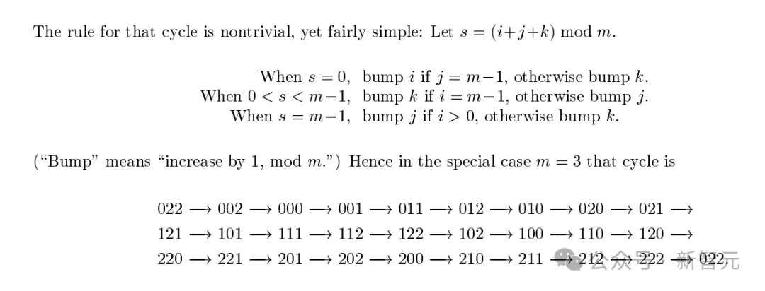 随后,高德纳证明,这条路径确实访问了所有m²个具有相同i值的顶点,然后依次覆盖所有i,最终形成长度为m³的完整环。