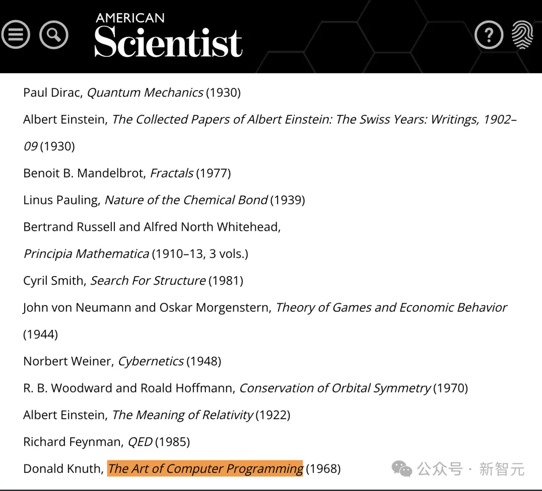 1999年底,这本书被《美国科学家》(American Scientist)期刊列为20世纪最佳12部学术专著之一,爱因斯坦的「相对论」、 罗素和怀特海的《数学原理》等科学史上的重要著作并列必读经典。