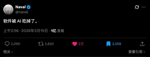 就一句话:“Software was eaten by AI.”