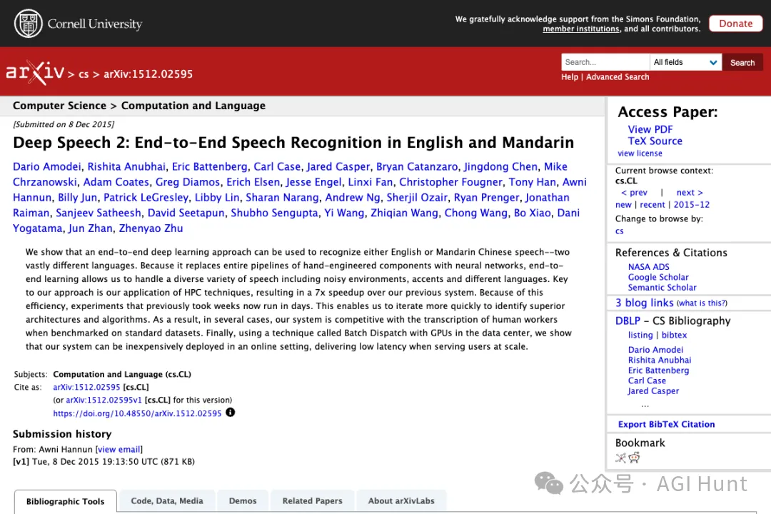 Deep Speech 2 论文,Dario Amodei 为第一作者