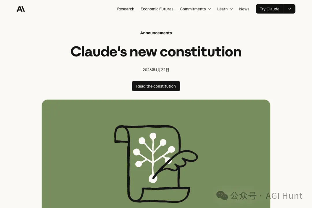 Anthropic 公开发布的 Claude 宪法博客页面