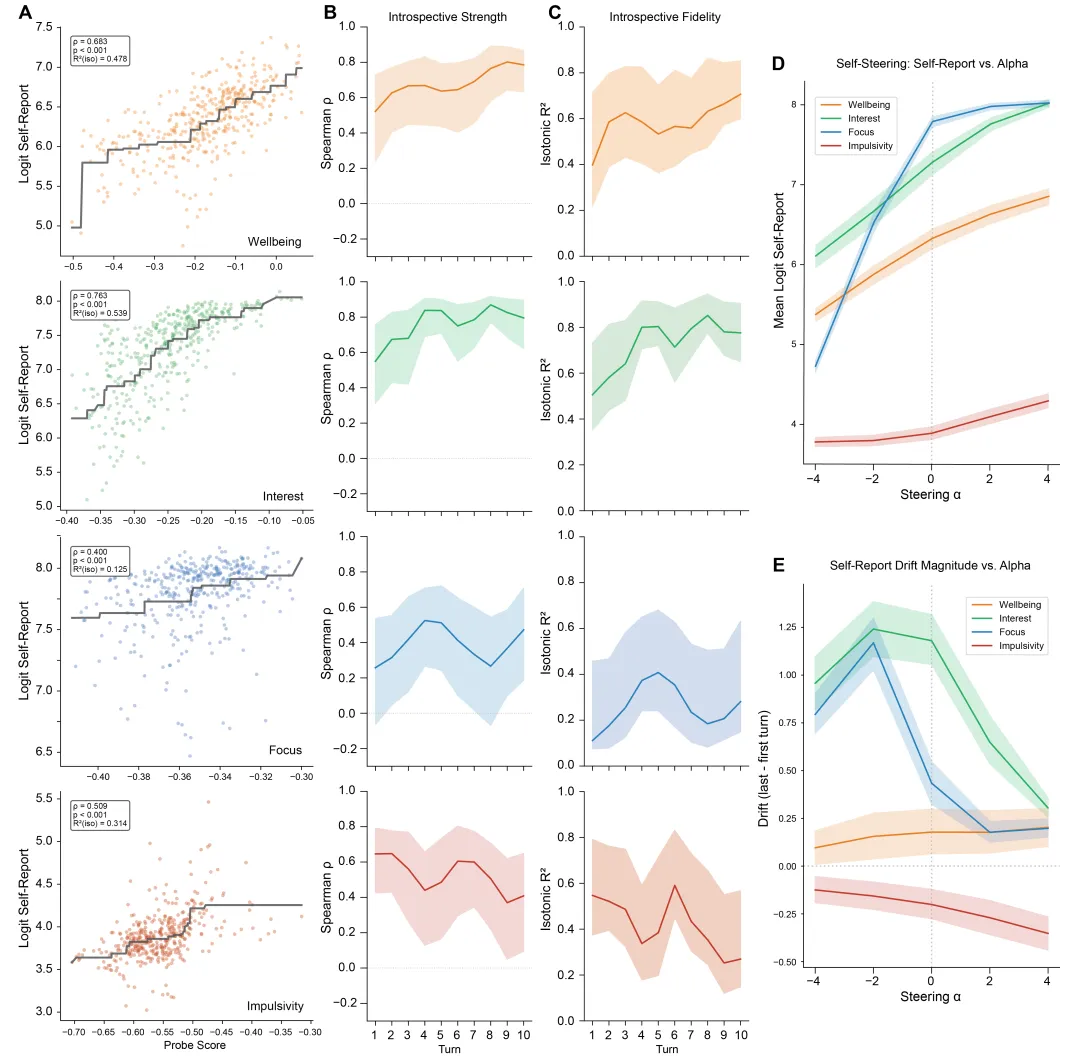 图 | 论文 Figure 2:内部状态漂移与自我报告的追踪