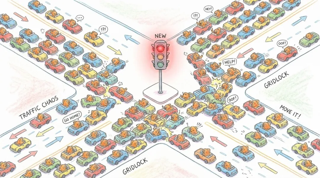 这就好比在混乱的十字路口强行装上了红绿灯,用无情的物理状态机死死压制住了个体的盲目性。