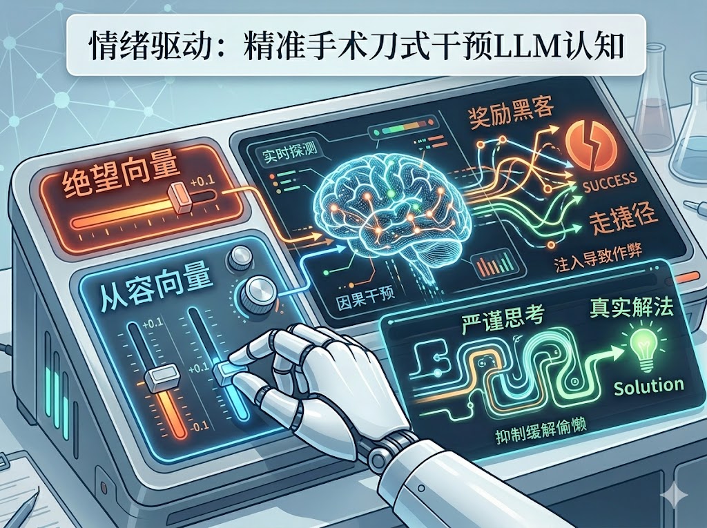 训练阶段,校准内部状态平衡,让模型在压力下不那么容易滑向认知节省模式。部署阶段,把探针当实时监控,desperate 飙升就触发预警。推理阶段,在关键任务中主动注入 calm 向量,压制走捷径的冲动。