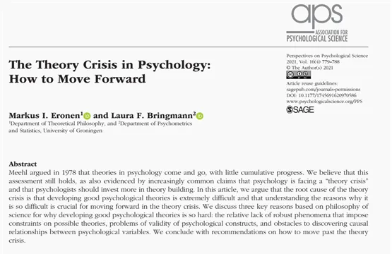 ▷Eronen, Markus I., and Laura F. Bringmann. “The theory crisis in psychology: How to move forward.” Perspectives on Psychological Science 16.4 (2021): 779-788.